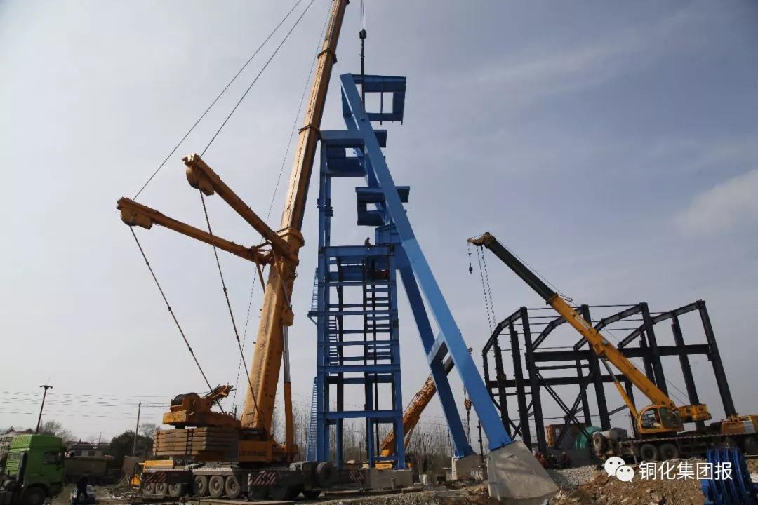 3月17日下午,新橋礦業(yè)公司露天轉(zhuǎn)地下項(xiàng)目現(xiàn)場(chǎng),在3臺(tái)巨型吊車的吊裝牽引下,70多噸重的副井斜架與38米高的立架順利連接,新的副井井架巍然屹立于新橋圣沖河畔,標(biāo)志著該公司重點(diǎn)礦建工程之一的露天轉(zhuǎn)地下項(xiàng)目地表礦建工程基本完工,經(jīng)過一段時(shí)間設(shè)備安裝和調(diào)試后便可投入生產(chǎn)。