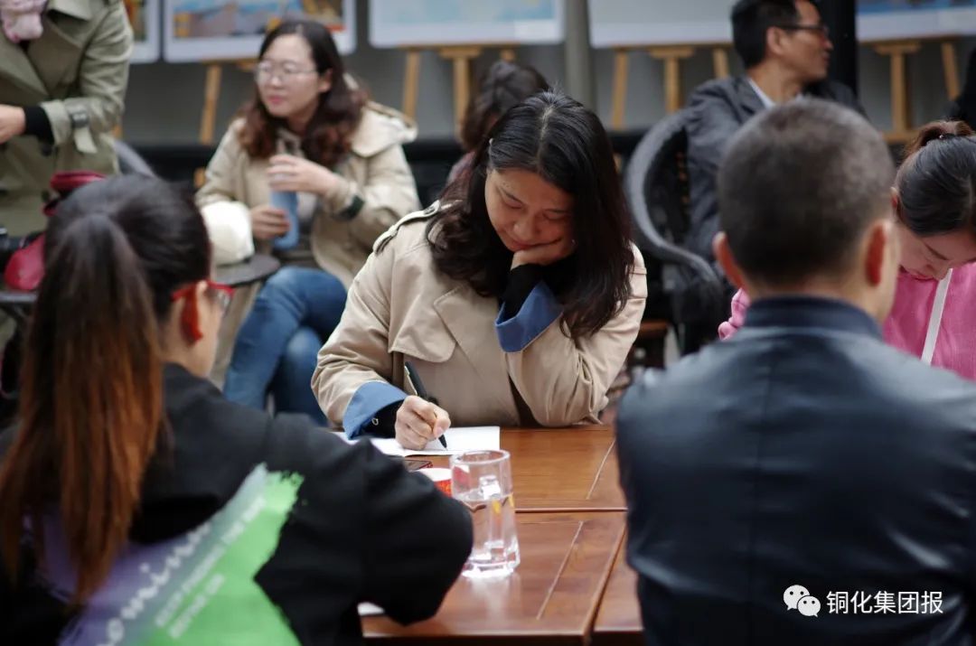 “好香啊,真是神仙處所!”“腦洞夠大呀,在這兒培訓也是享受!”一進門,通訊員們便被書院典雅秋色和濃郁桂香所吸引,就連《銅陵日報》與《銅化集團》報的4位老師也忍不住贊嘆:“花香伴書香,確是看書、學習的佳境!”幾張小桌拼湊在院里的桂花樹下,小方凳圍坐一圈,培訓班正式開課。沒有電子屏,也沒有刻意準備的課件,一縷花香,一杯清茶,拋開拘謹,“師生”促膝圍坐,開啟了“嘮嗑”式培訓。通訊員們把平時找新聞、寫新聞過程中遇到的困惑、難事拿出來發(fā)問求解,4位編輯老師也結(jié)合多年采、寫、編經(jīng)驗和現(xiàn)實所遇事例盡心為大家答疑解惑,通訊員們之間還結(jié)合自己見報之作分享了各自心得。