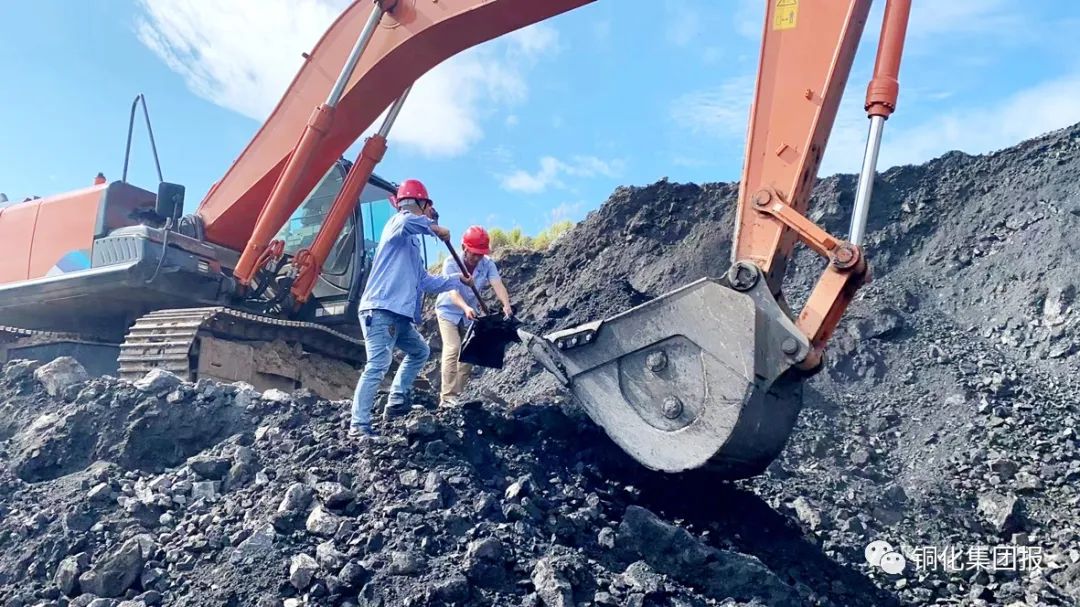 7月12日,在新橋礦業(yè)公司露天礦銷售中心發(fā)貨現(xiàn)場(chǎng),銷售員冒著高溫酷暑取礦樣。