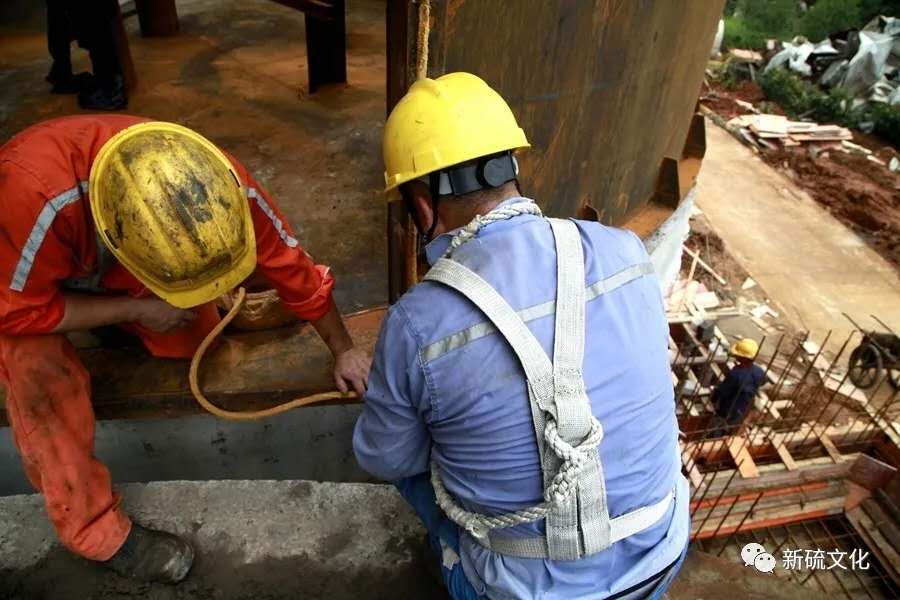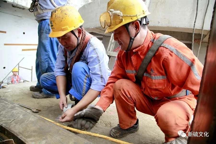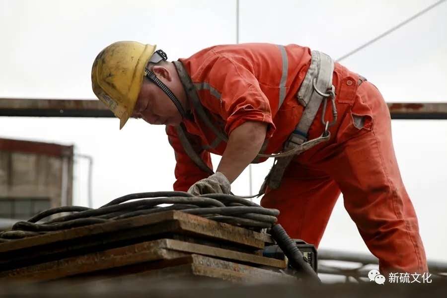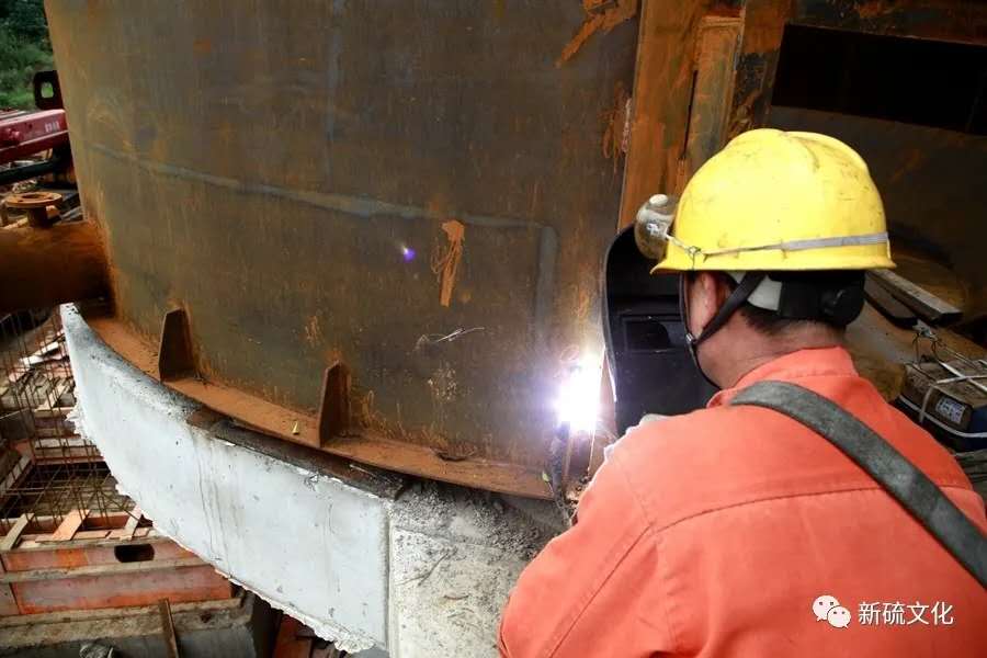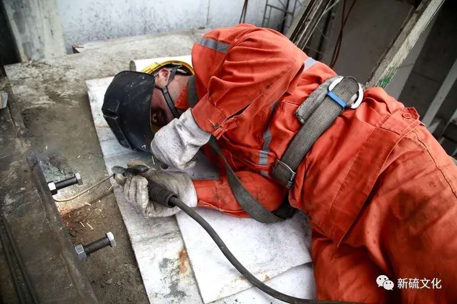 地面上大吊車(chē)、大貨車(chē),選礦廠相關(guān)負(fù)責(zé)人、技術(shù)人員、安全員等忙著起吊龐然大物時(shí),“焊高組”在底座上也一刻沒(méi)閑著,拖運(yùn)電焊設(shè)備、準(zhǔn)備焊接材料、在底座上鋪水泥保持平面,各個(gè)槽體支腳找平衡......由于底座緊挨著磨浮車(chē)間,空氣不流通,加上天氣悶熱難擋,武裝整齊的好“焊”們一會(huì)就汗?jié)窳斯ぷ鞣?,汗珠順著安全帽壓著的發(fā)根往下滾。